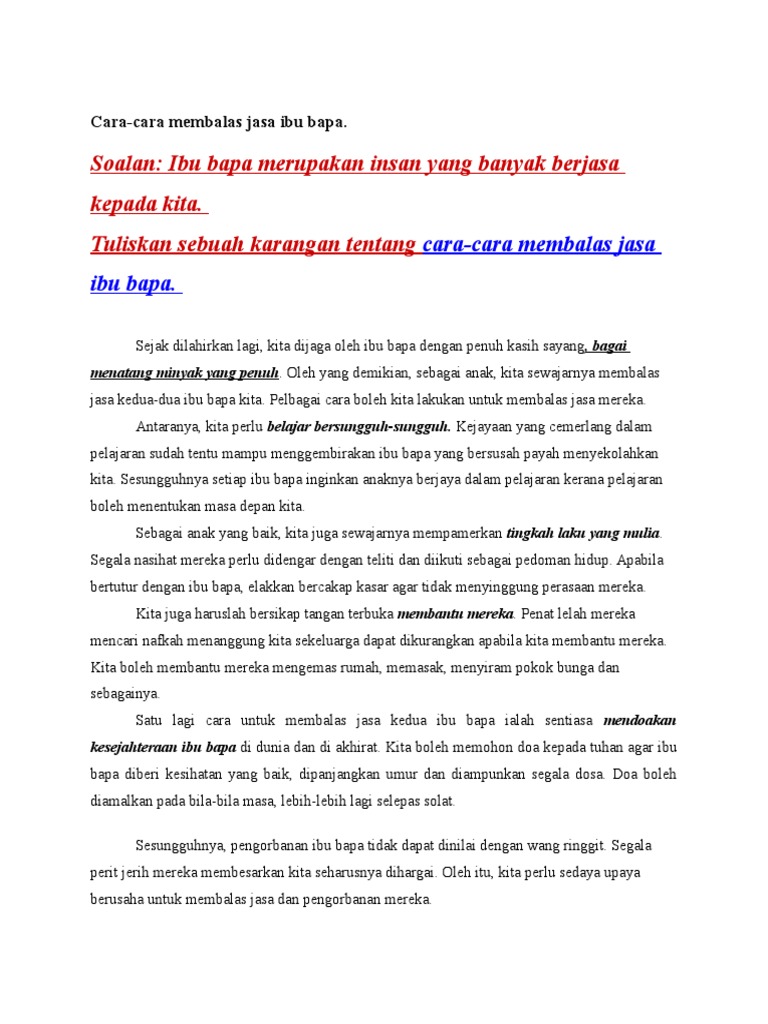 Cara Cara Membalas Jasa Ibu Bapa Pdf